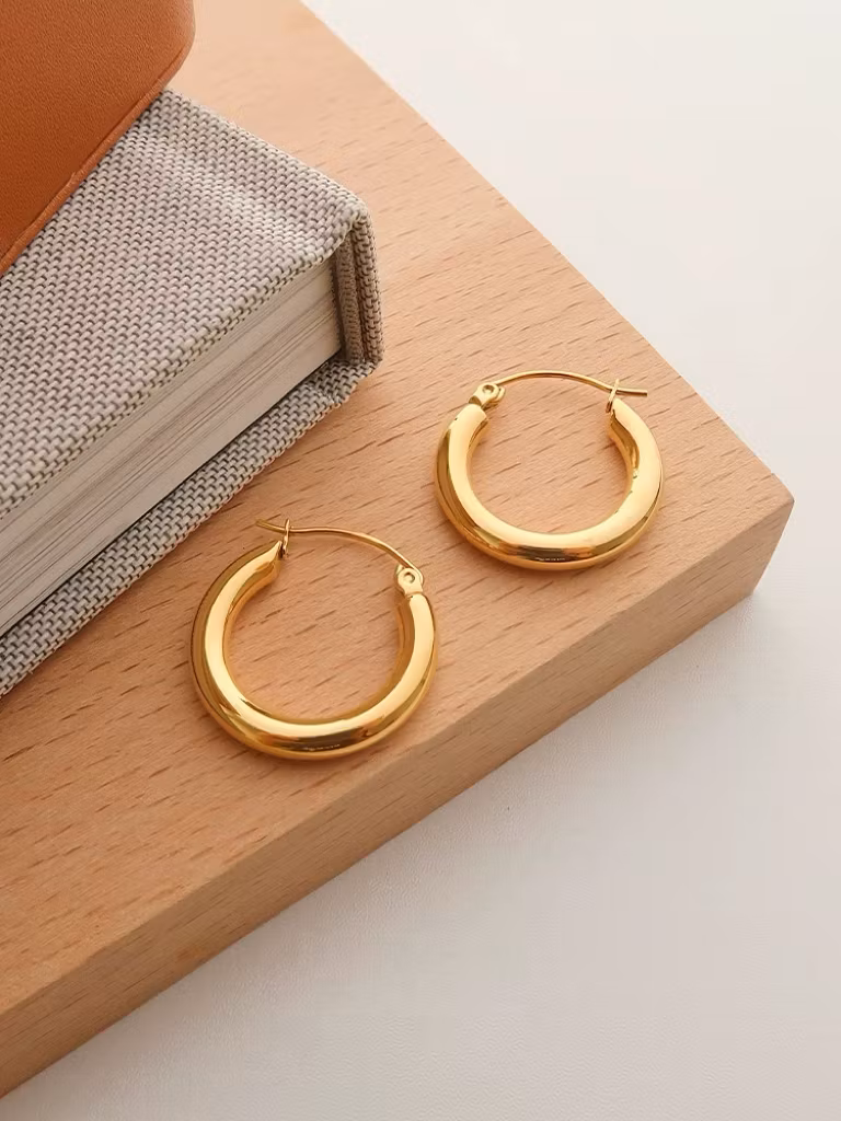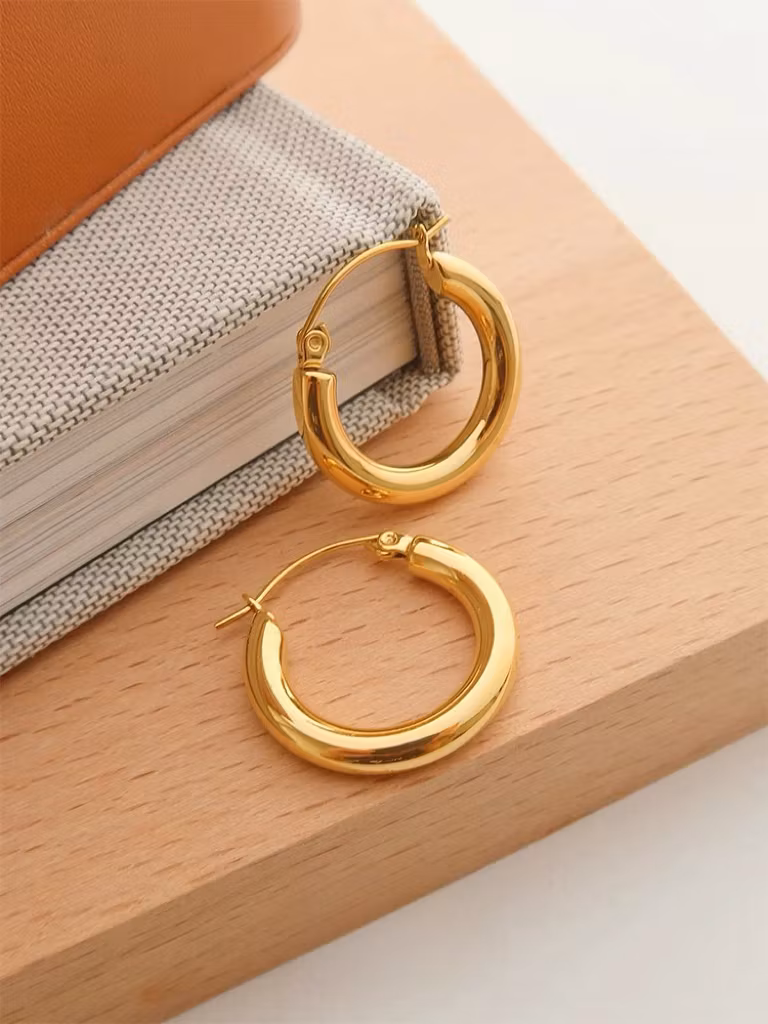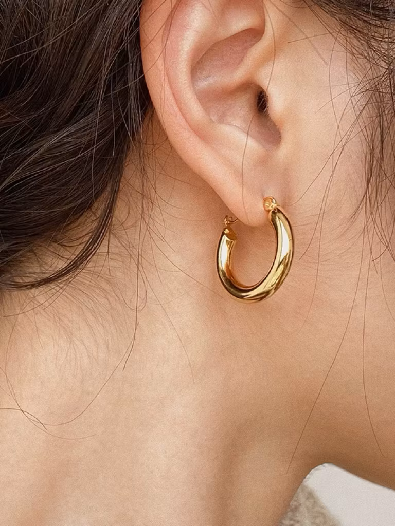 Örhängen i högpolerat rostfritt stål som är PVD-pläterat med 18K guld. Tidlöst smycke tillverkat i ett vattentåligt, allergivänligt och slitstarkt material som håller dem fina länge. Bada, duscha och träna utan att oroa dig för att de ska tappa färg.