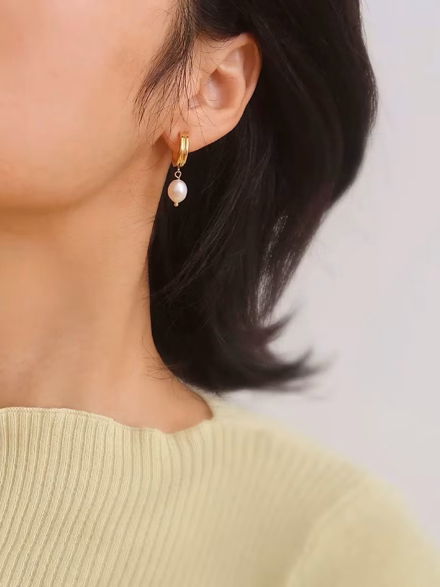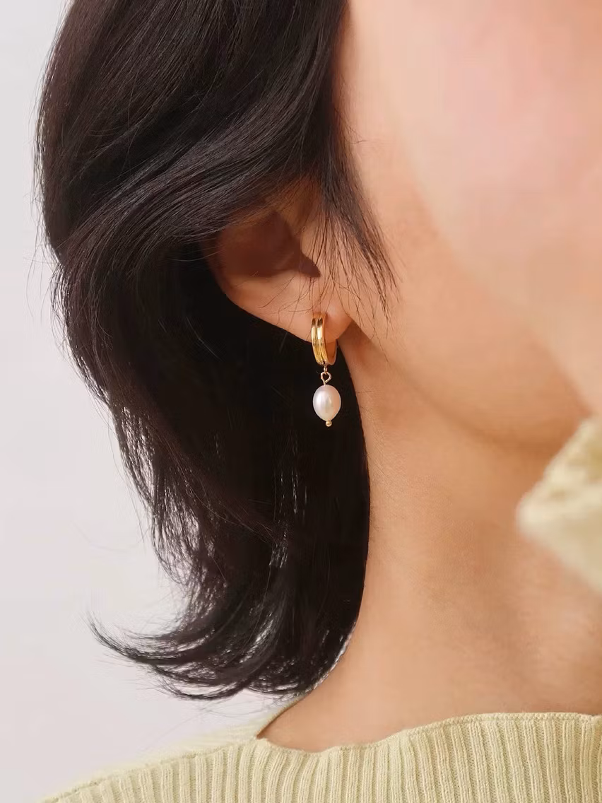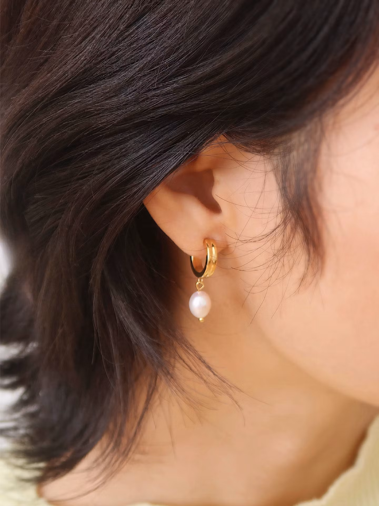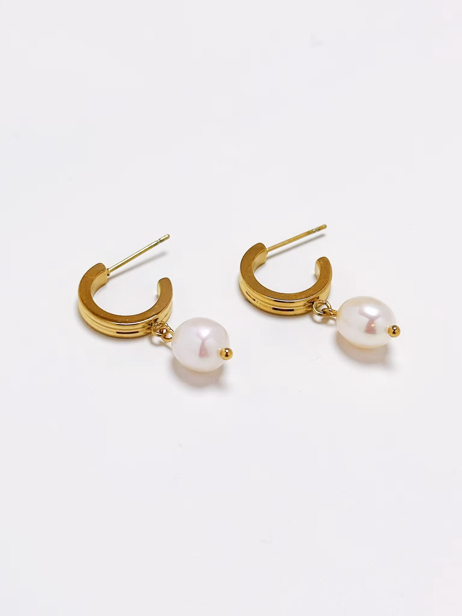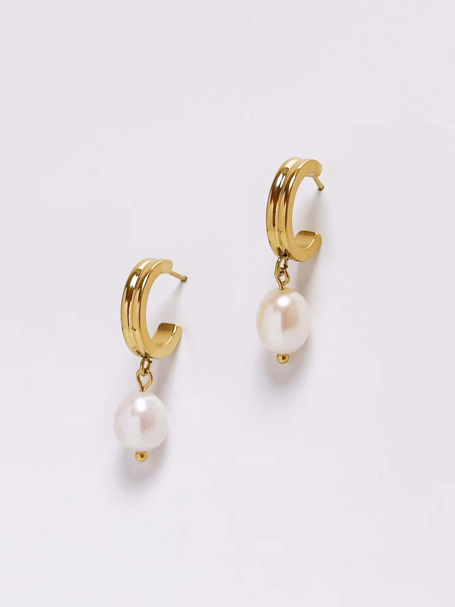 Små hoops i stål med 18k guldpläterat och hängen av små sötvattenspärlor. Ett par dekorativa örhängen som adderar det lilla extra till din outfit.