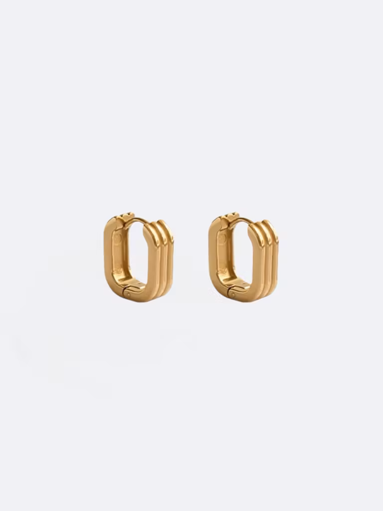 Örhängen i högpolerat rostfritt stål som är PVD-pläterat med 18K guld. Tidlöst smycke tillverkat i ett vattentåligt, allergivänligt och slitstarkt material som håller dem fina länge. Bada, duscha och träna utan att oroa dig för att de ska tappa färg.