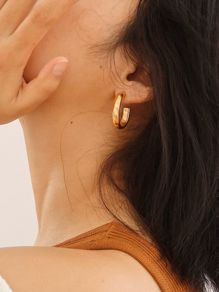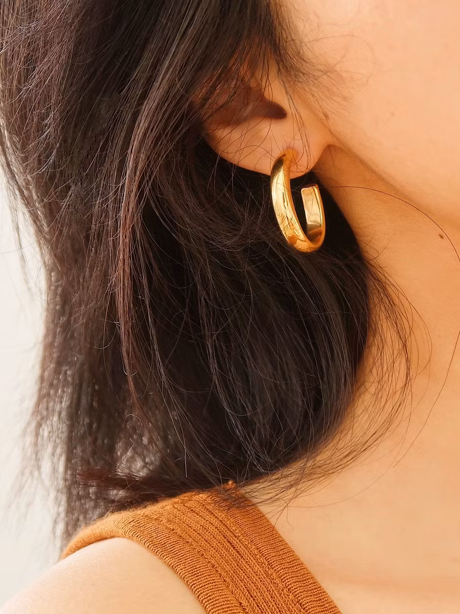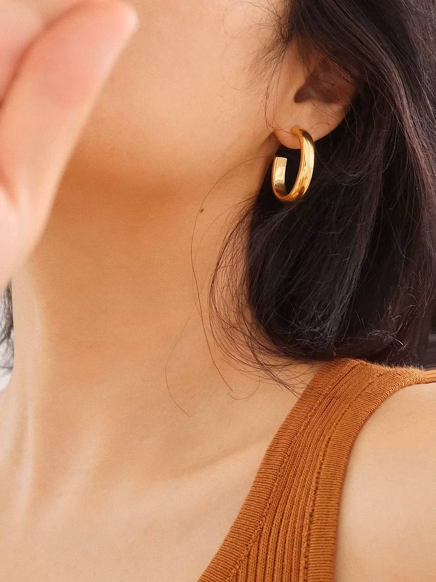 Örhängen i högpolerat rostfritt stål som är PVD-pläterat med 18K guld. Tidlöst smycke tillverkat i ett vattentåligt, allergivänligt och slitstarkt material som håller dem fina länge. Bada, duscha och träna utan att oroa dig för att de ska tappa färg.