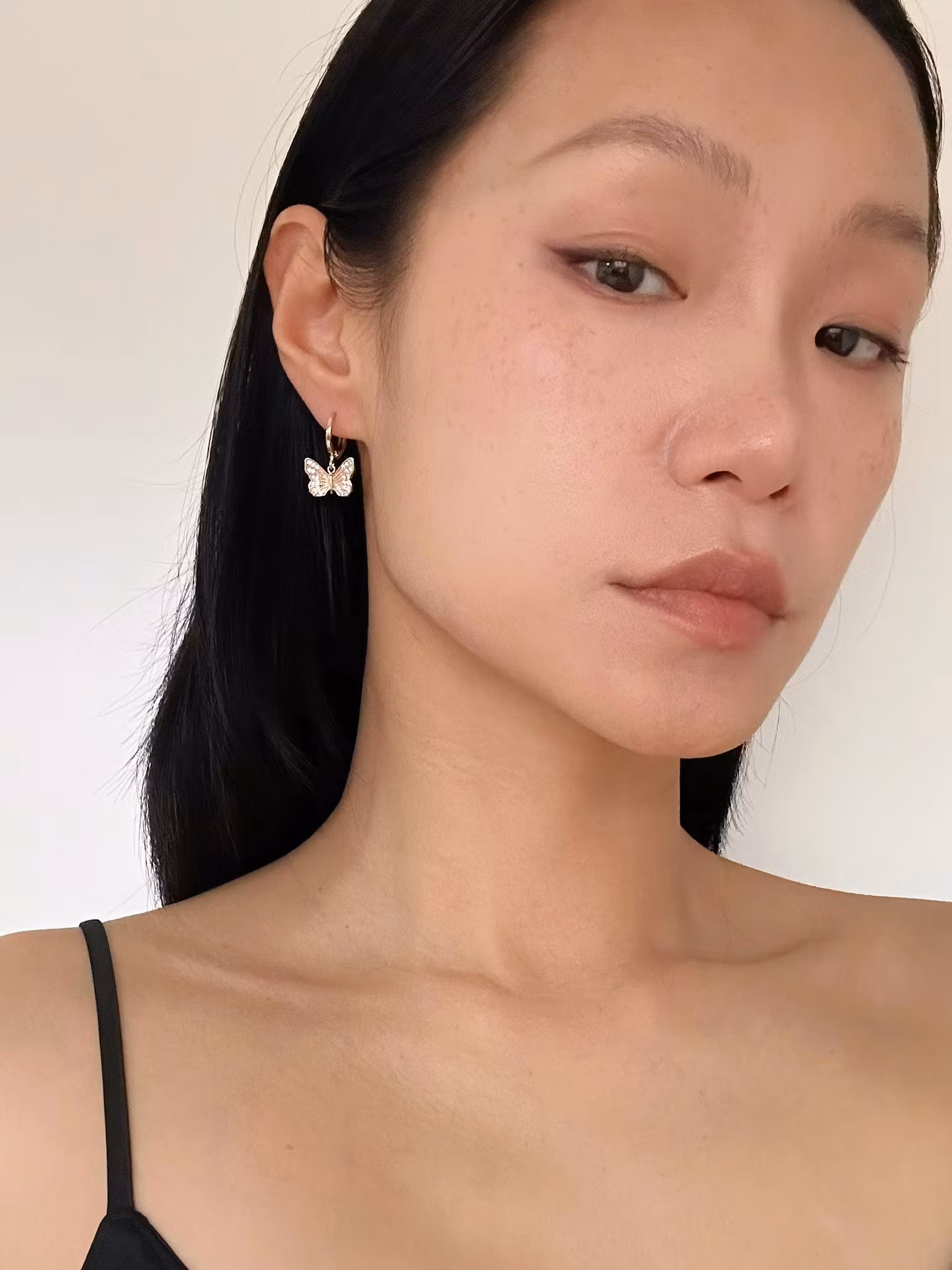 Ett gnistrande hänge med ett fjärilsmotiv av glasstenar.