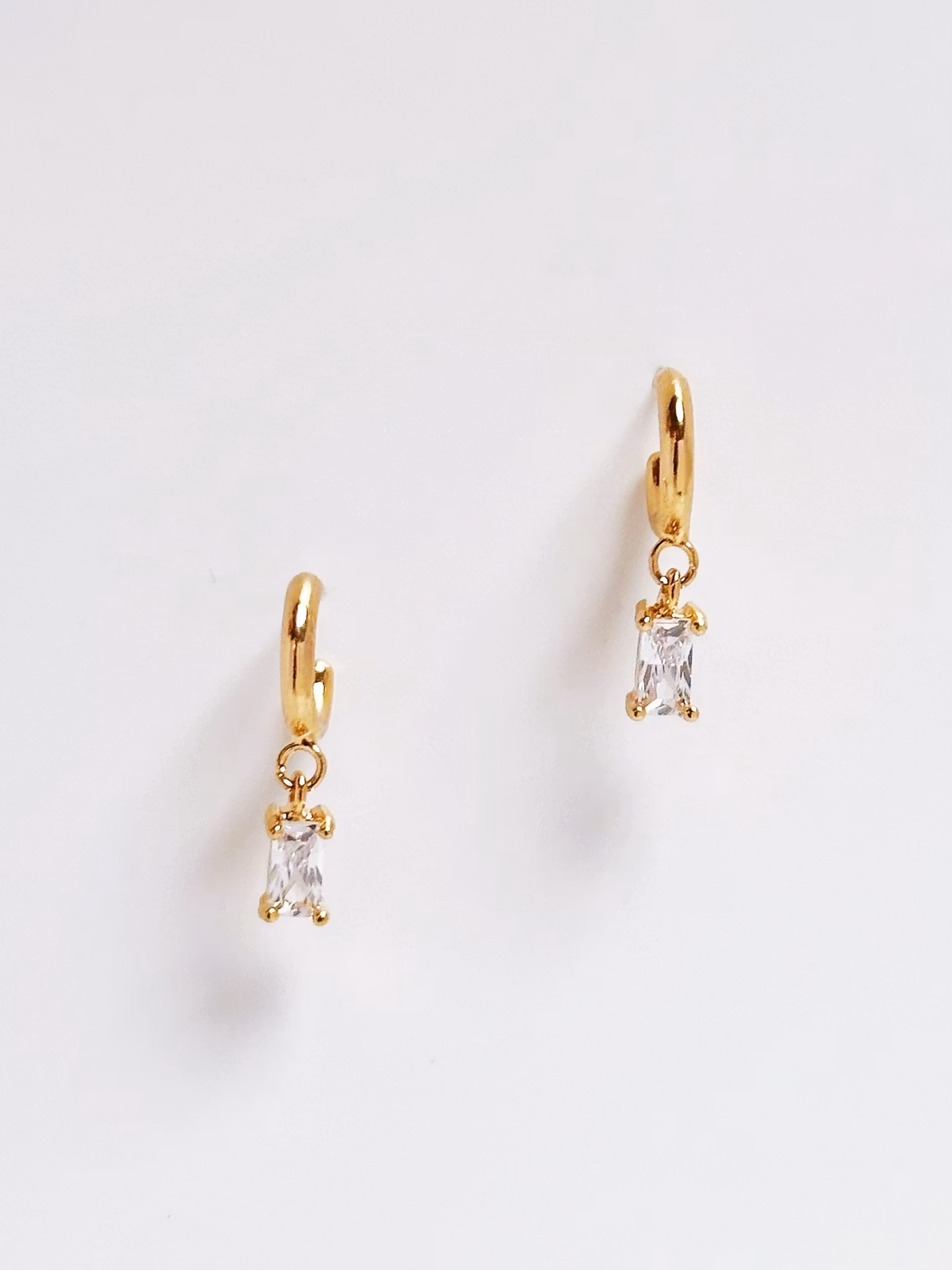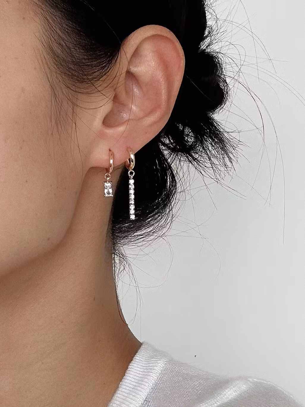 Hoops dekorerade med glasstenar - Fyrkant. Om du har flera hål i ett öra kan de också användas tillsammans.