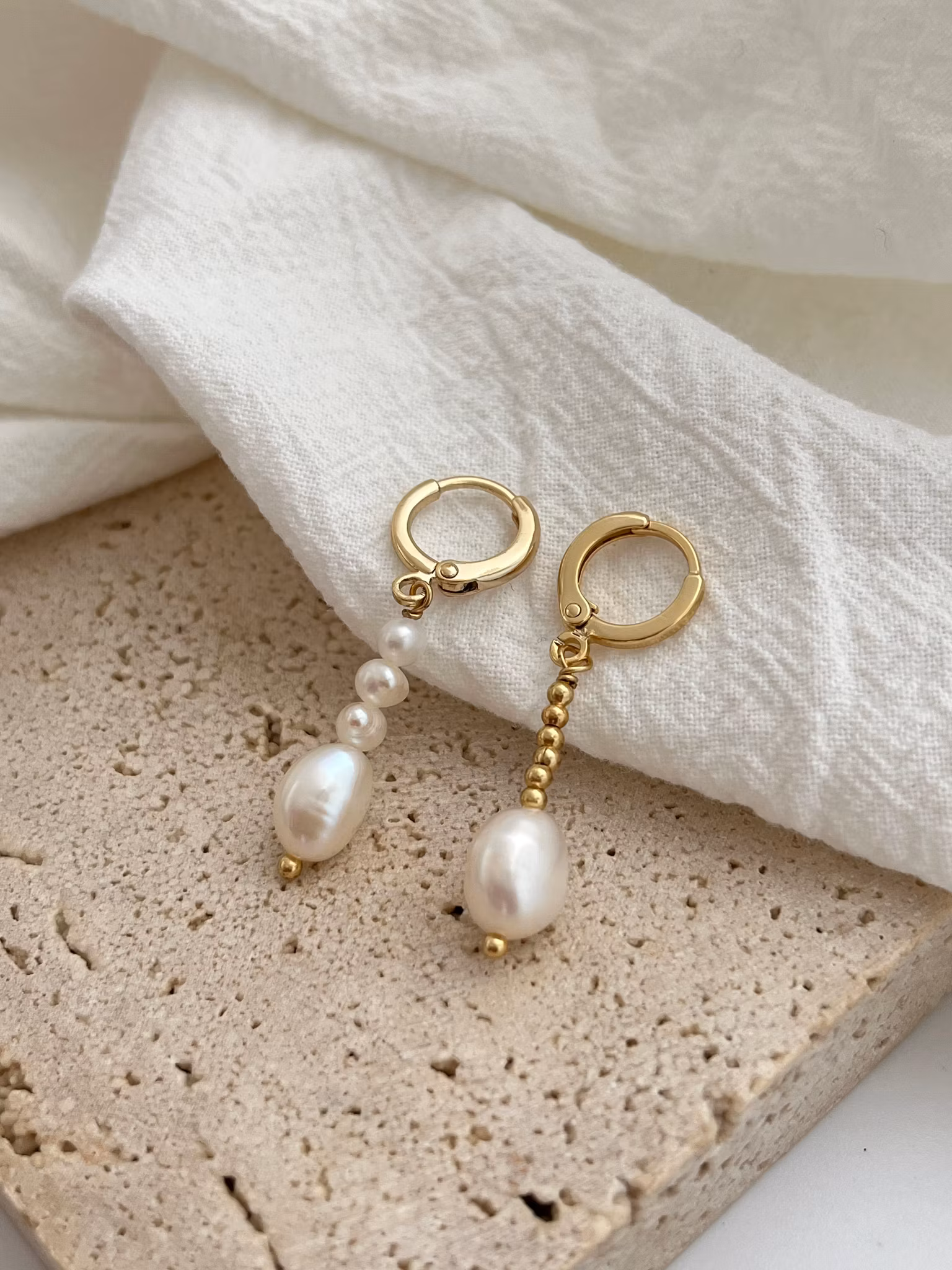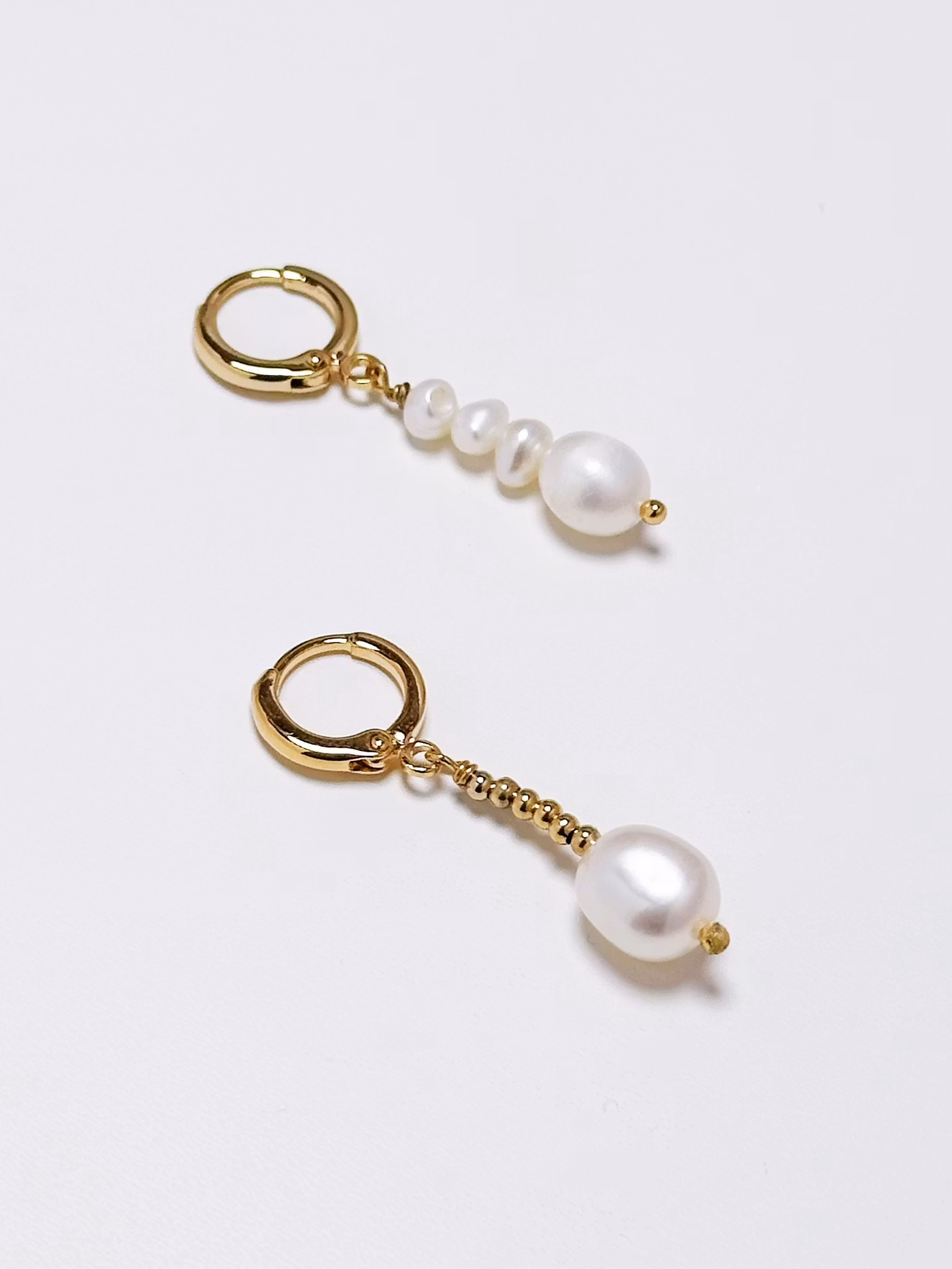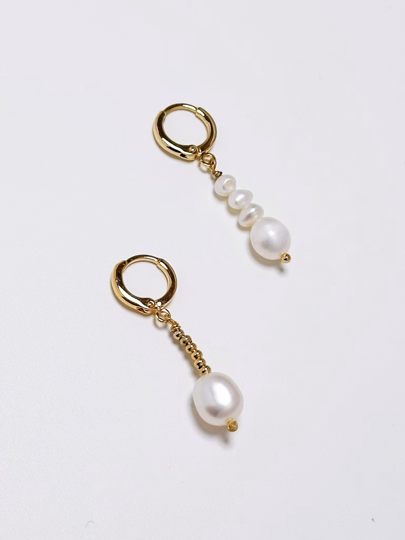Den asymmetriska designen på sötvattenspärlan framhäver personligheten och bryter det tråkiga. Enkla och snygga örhängen som kan matchas lika bra till blusen som till klänningen.
