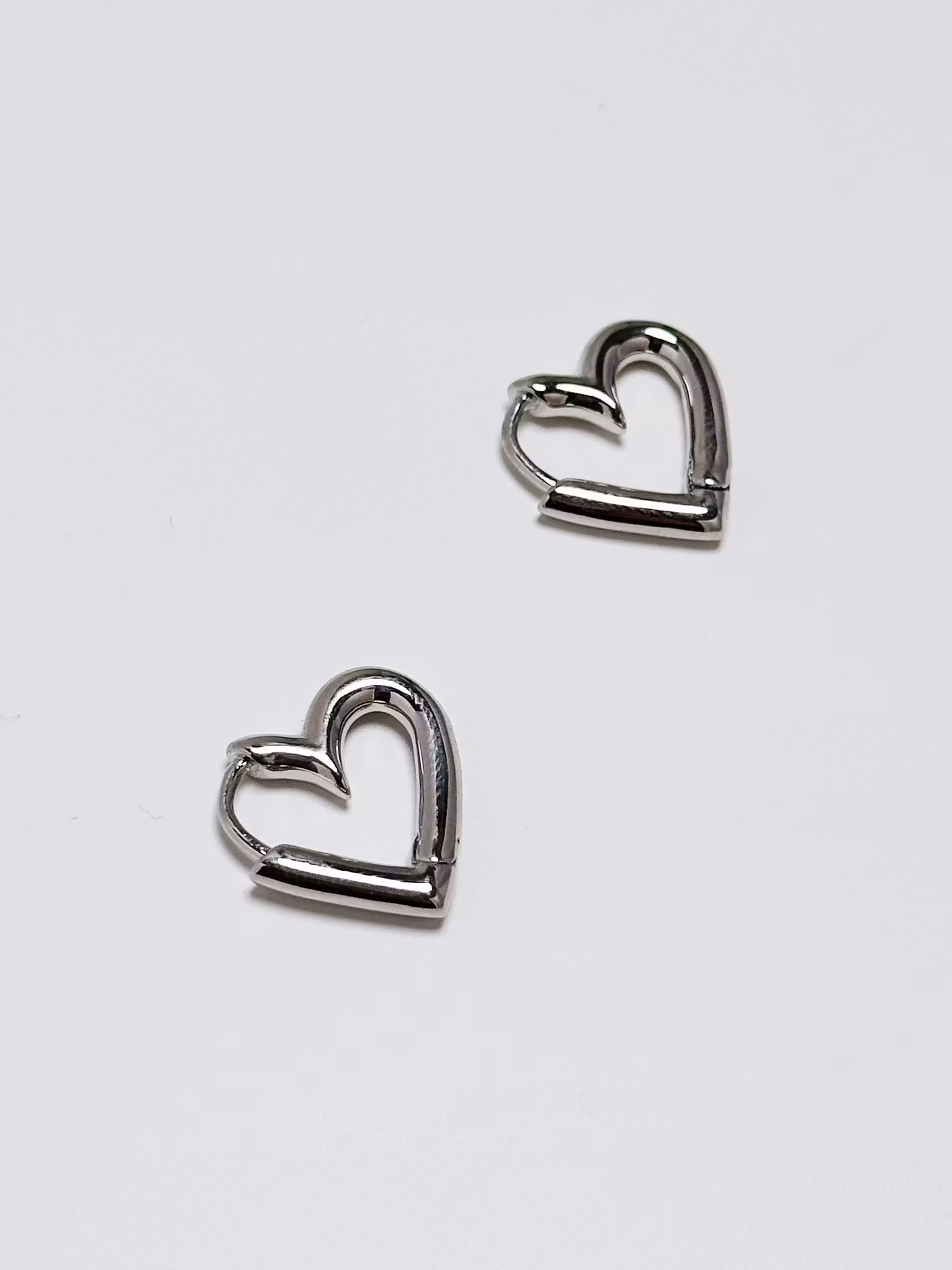 Ett par hjärtformade silverpläterade örhängen, perfekta för vardagsbruk, enkla och söta.