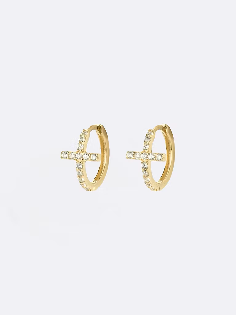 Mini hoops i äkta silver med 18K guld och cross Cubic Zirconia