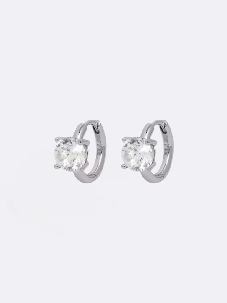 Små hoops i äkta silver som är dekorerade med små klara stenar framtill. Ett par skimriga örhängen med både små och en större rund Cubic Zirconia sten. Tack vare sin diskreta storlek så passar de perfekt både till fest som till vardagslooken.