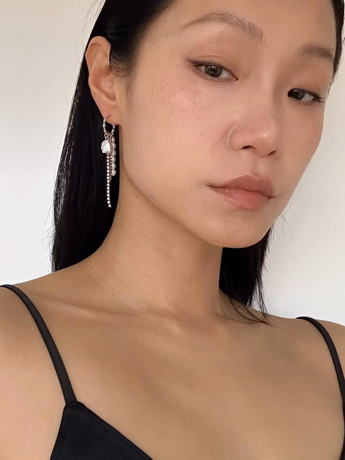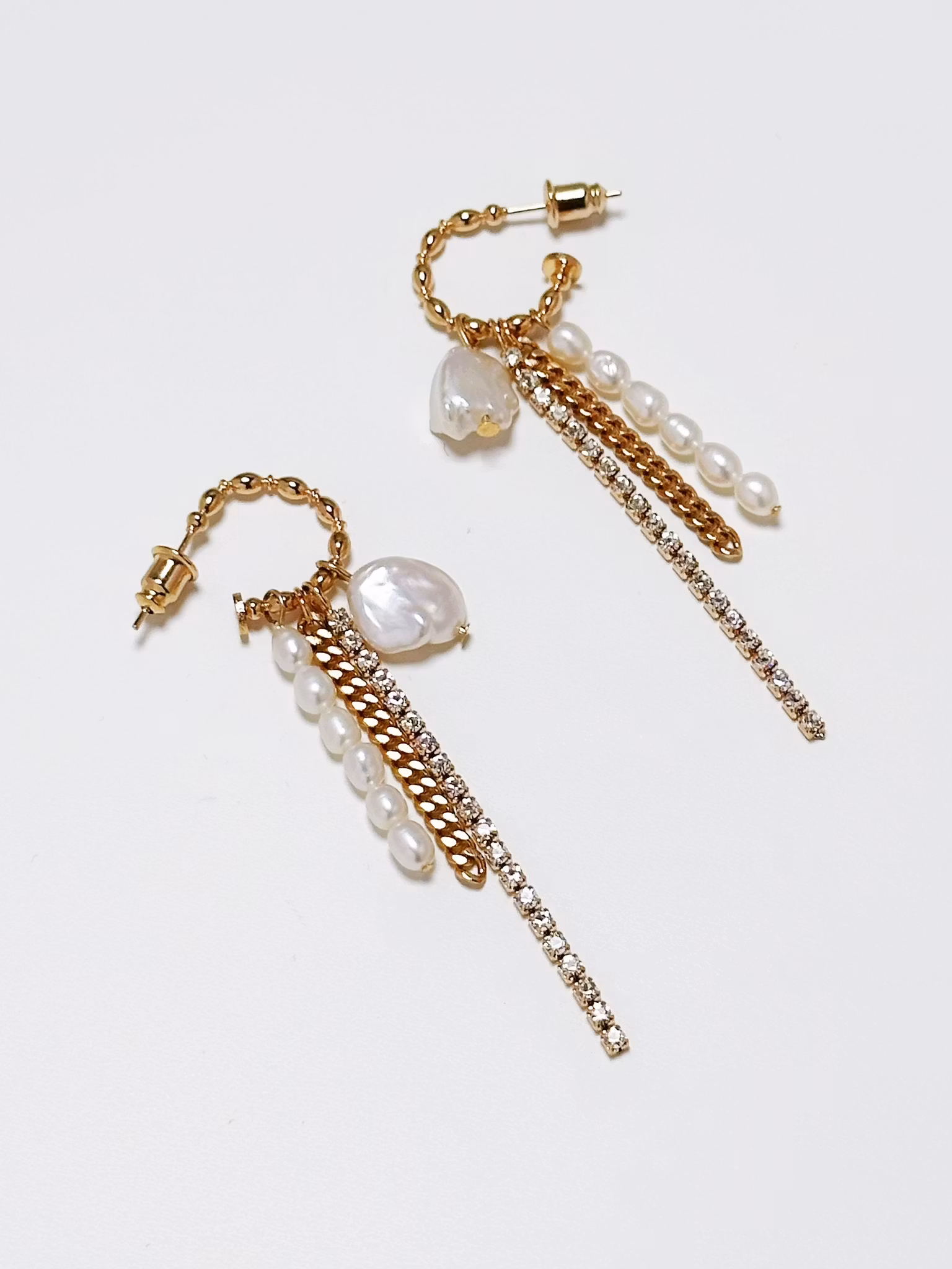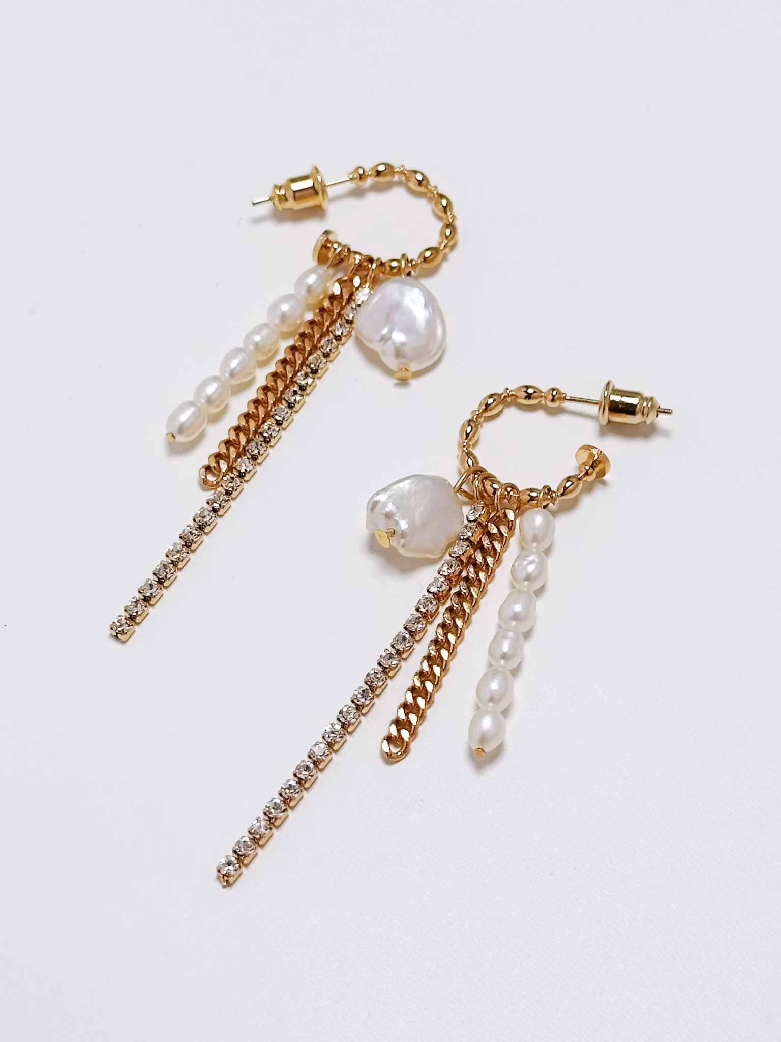Långa kedjeörhängen i metall med sötvattenspärlor och strass kedja . Ett par dekorativa örhängen med skimmer som kommer dingla fritt. Perfekta till festliga tillställningar.