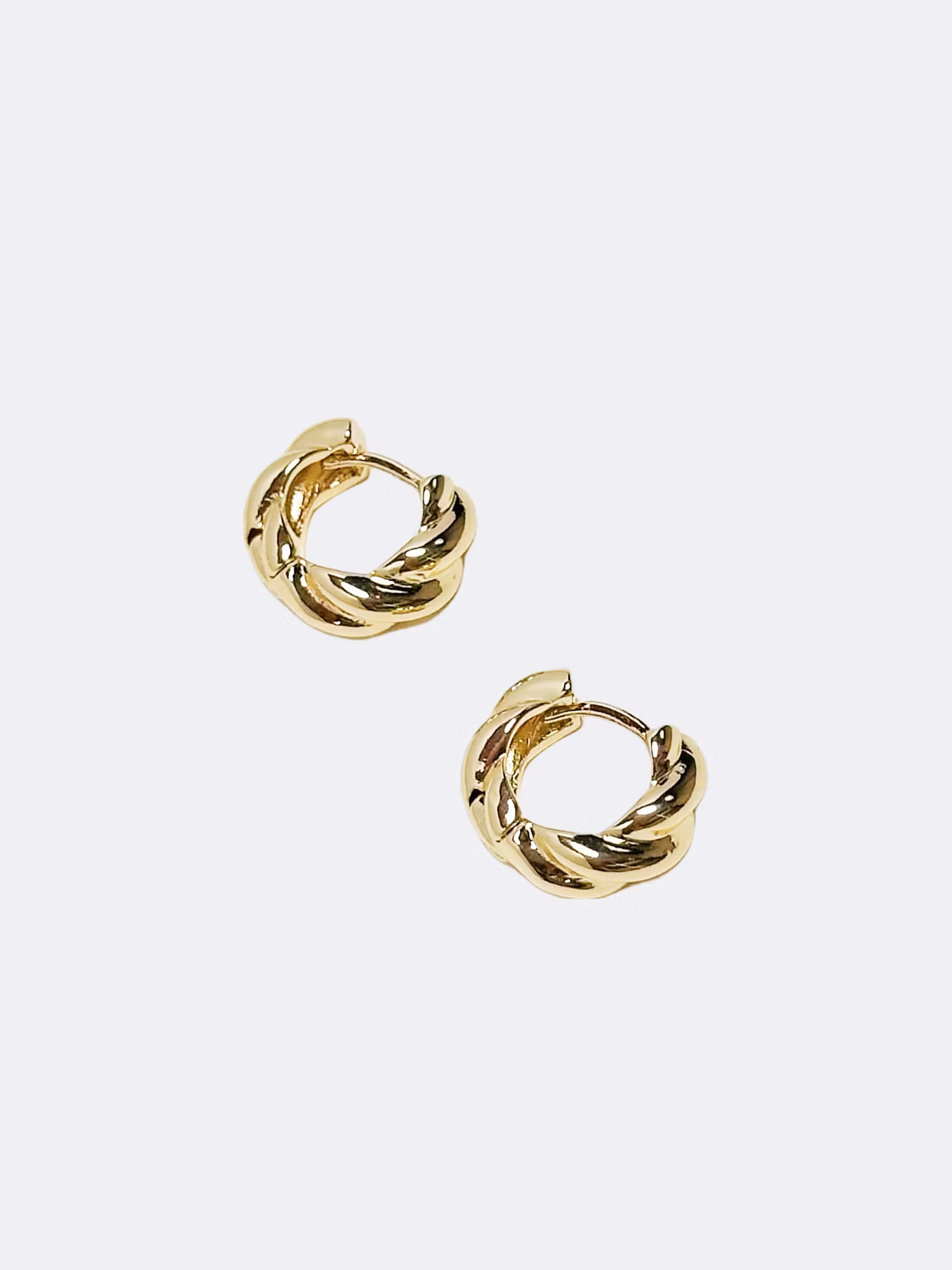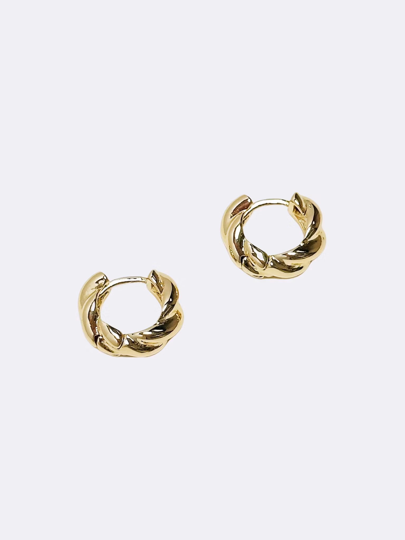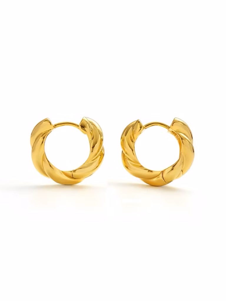 Guldfärgade hoops i tvinnade design. Ett par stilrena örhängen med spännande form som passar till alla tillfällen.