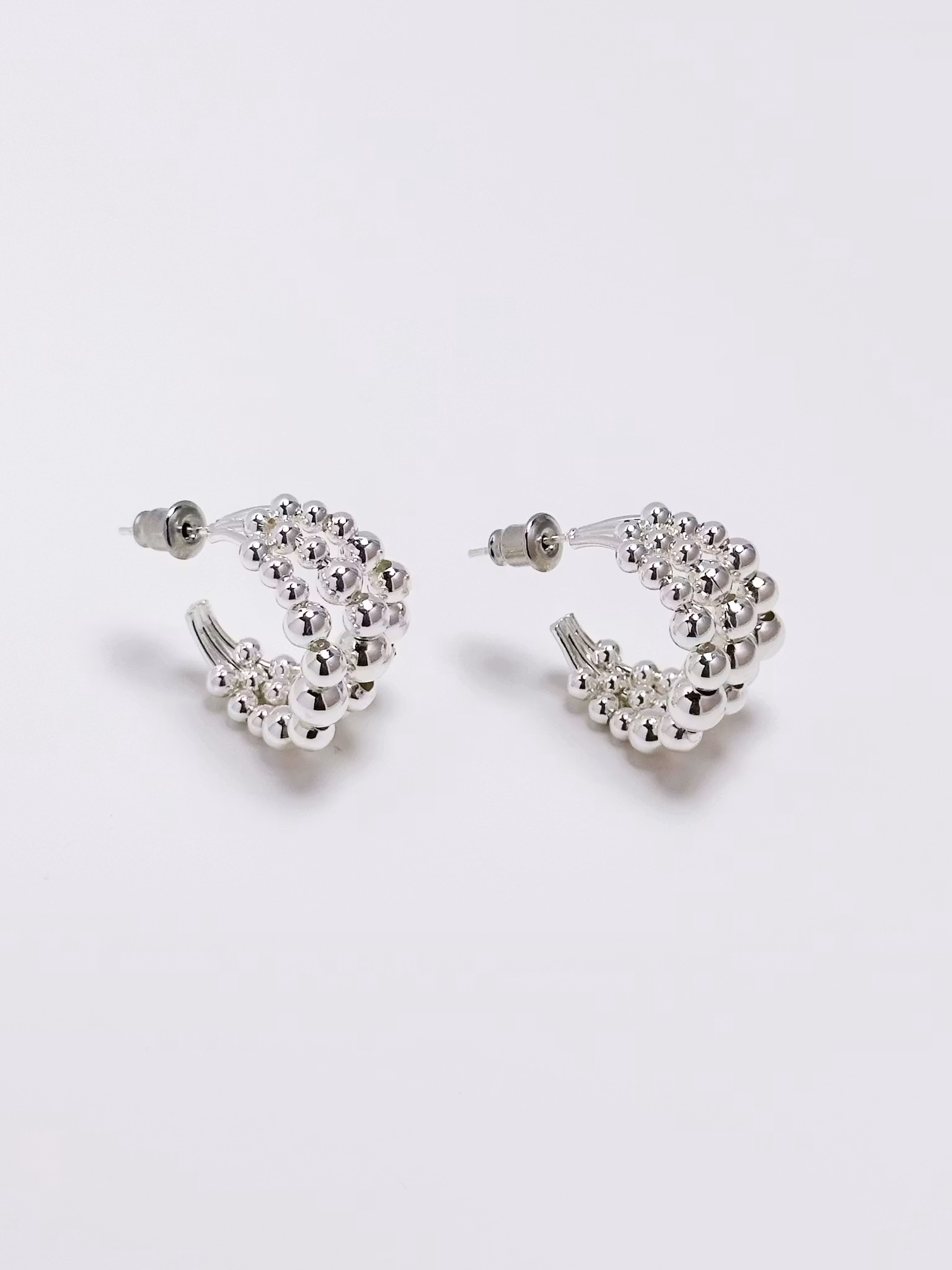 Silverfärgade metall hoops, örhängen med små kulor. Ett par snygga örhängen för alla tillfällen. Perfekt diskreta dekorativa detaljer.