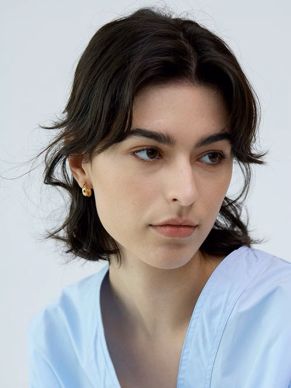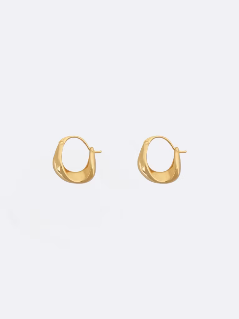 Små chunky hoops i guldfärgad metall med bred design och blank yta. Ett par stilrena örhängen med minimalistisk design som kan användas till alla tillfällen och passar till flera olika outfits.