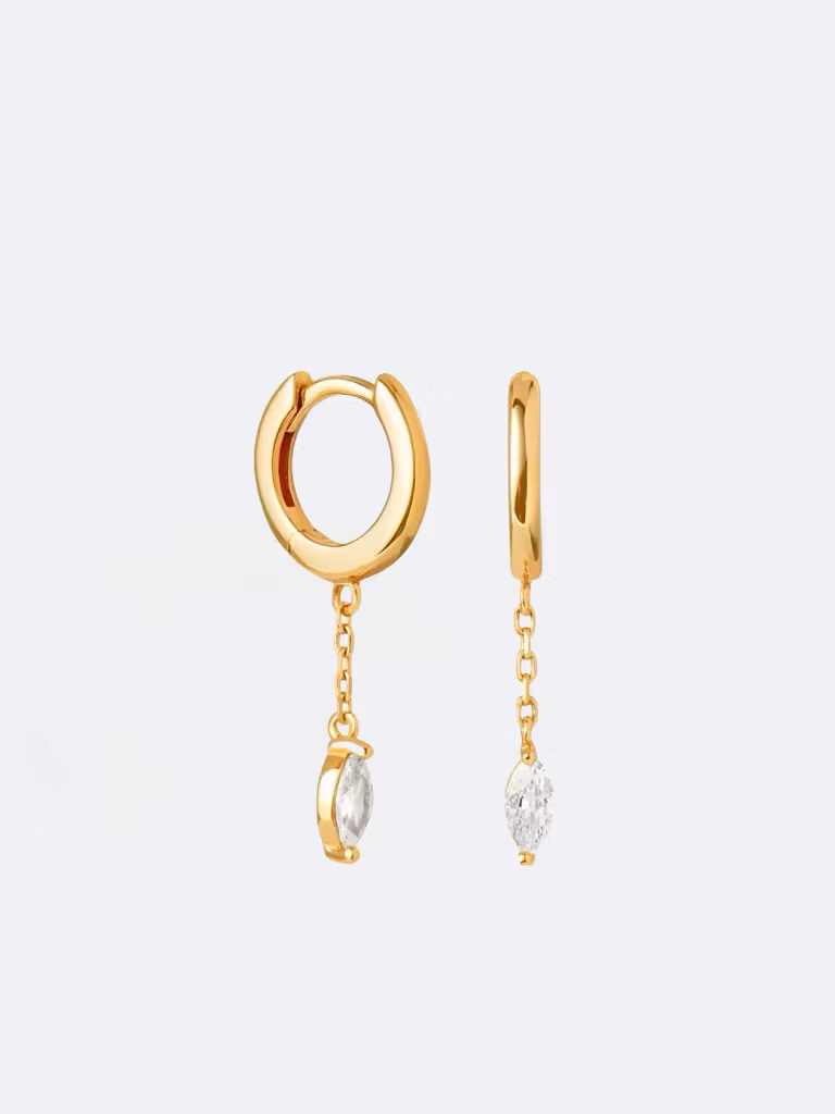 ꔷ BESKRIVNING Små hoops i 18 karat guldpläterat äkta silver med ett hänge av en Cubic Zirconia sten.ꔷ INFORMATION Mått : 2,7 cmMaterial: 18 k guldpläterat sterling silver 925 | Cubic Zirconia