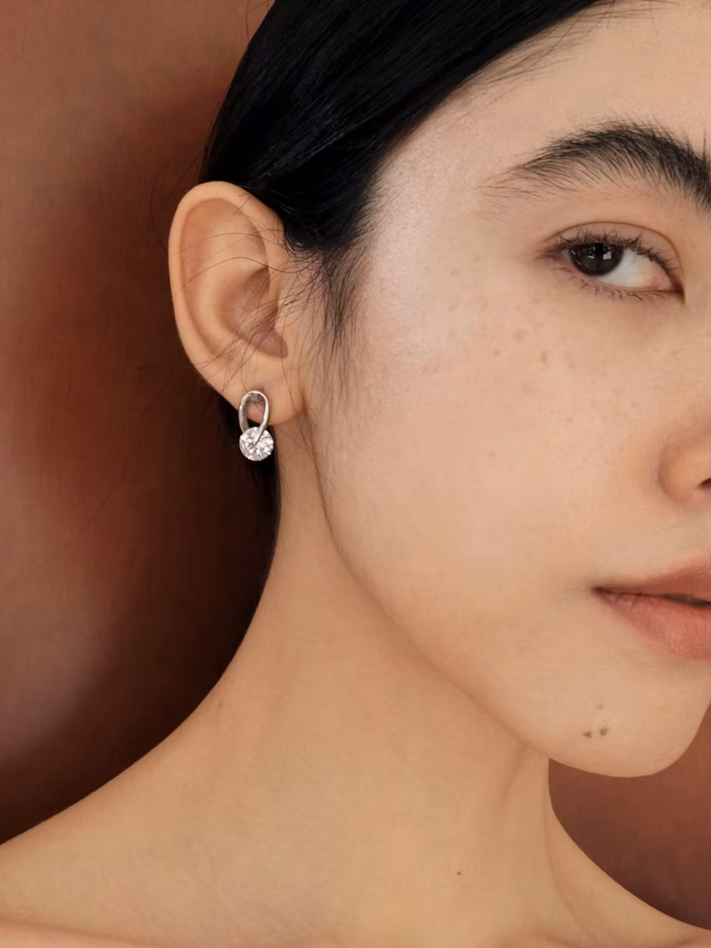 Skimrande små örhängen i kopparpläterad med Cubic Zirconia. Cubic Zirconia i botten kan sväng för att få den att lysa starkare i ljuset .Perfekt för både vardag som fest.