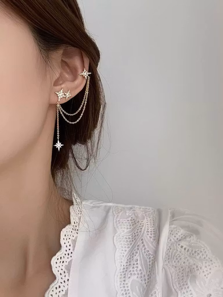 REA Långa strassörhängen med stjärnor och earcuff