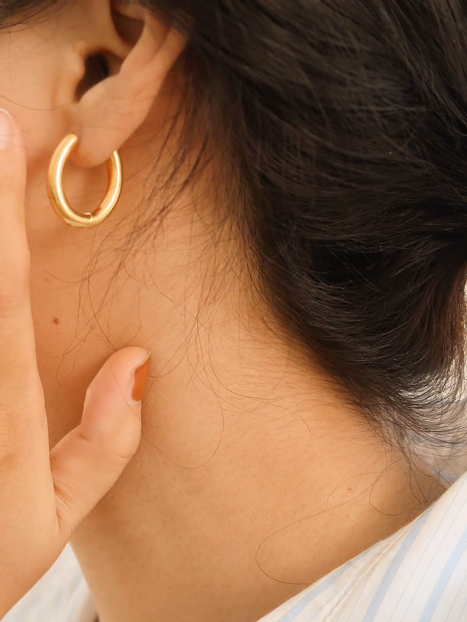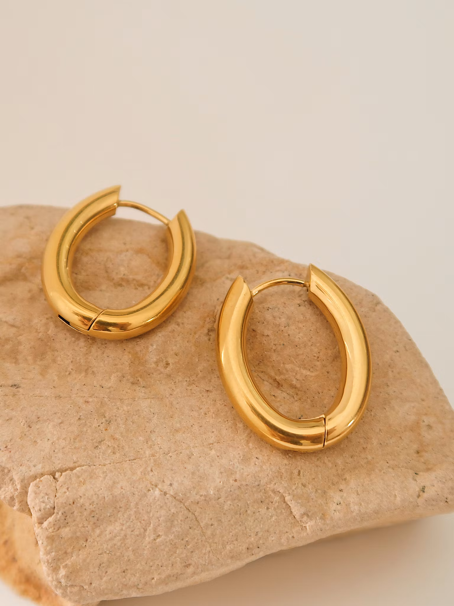 Örhängen i högpolerat rostfritt stål som är PVD-pläterat med 18K guld. Tidlöst smycke tillverkat i ett vattentåligt, allergivänligt och slitstarkt material som håller dem fina länge. Bada, duscha och träna utan att oroa dig för att de ska tappa färg.