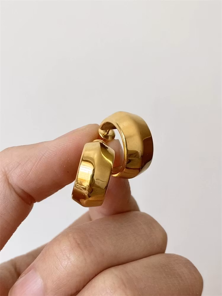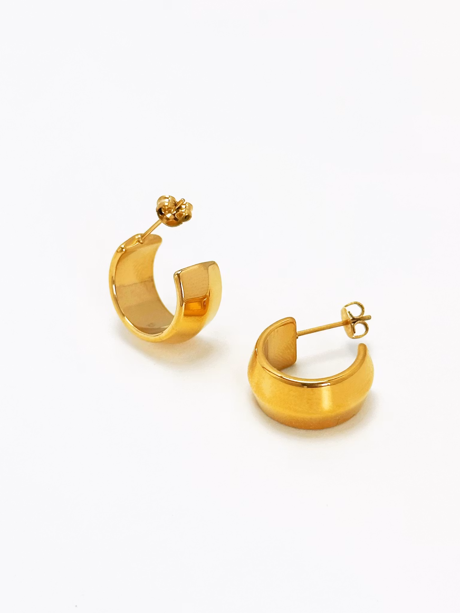 Örhängen i högpolerat rostfritt stål som är PVD-pläterat med 18K guld. Tidlöst smycke tillverkat i ett vattentåligt, allergivänligt och slitstarkt material som håller dem fina länge. Bada, duscha och träna utan att oroa dig för att de ska tappa färg.