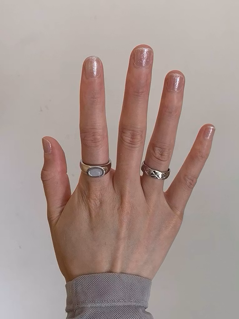 Öppen ring med kattöga, silverfärgad